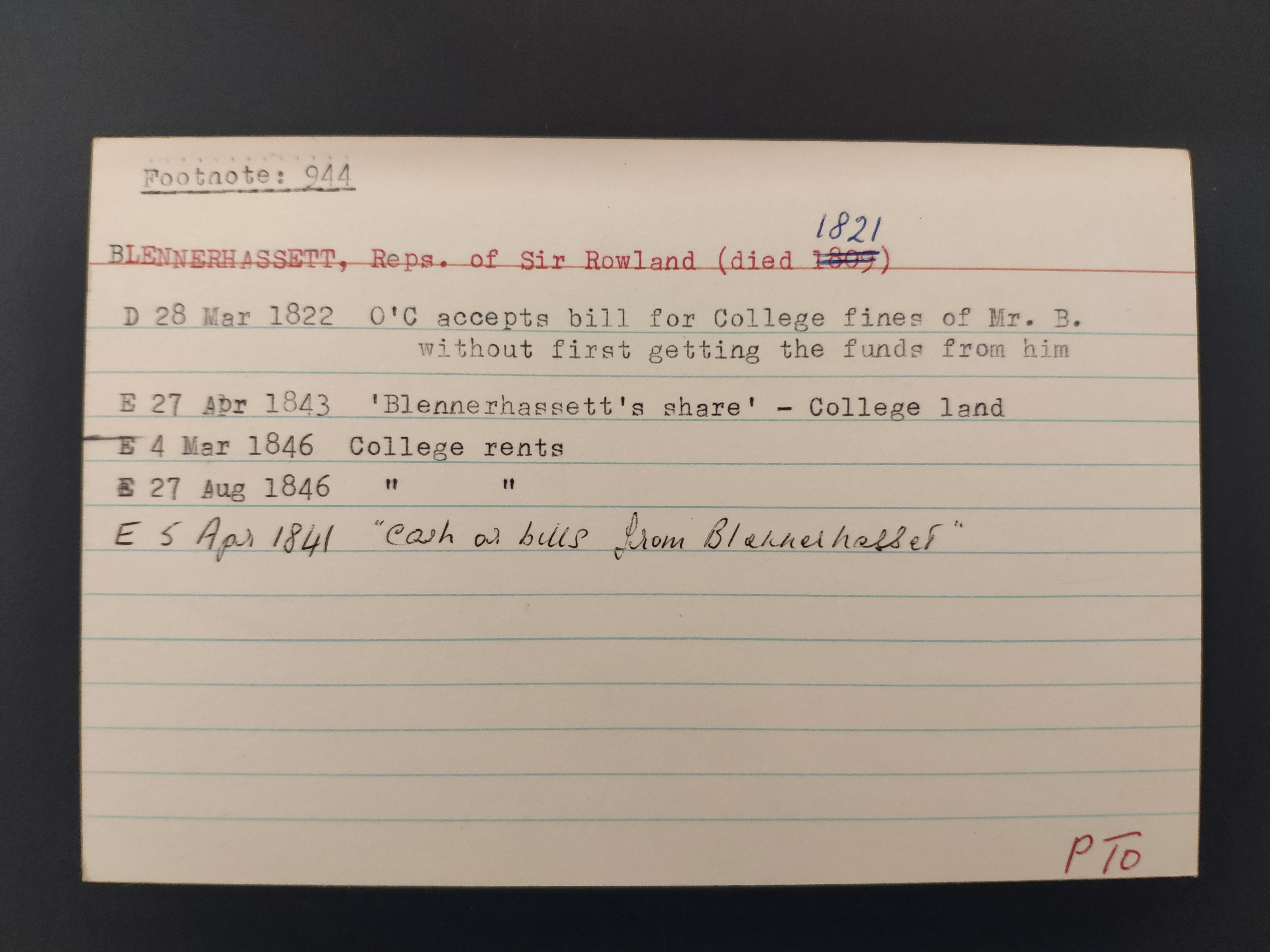 See also [Deed of Apr 1821]. Issue related to the will of Sir Rowland Blennerhassett.