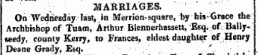 They mar in Merrion Square, Dublin. See notice in Freemans Journal, February 2, 1821.