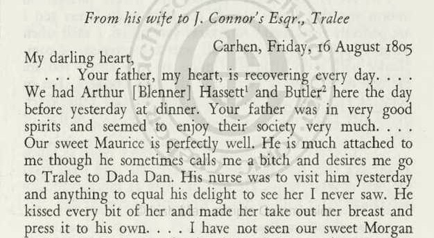 letter of 16 Aug 1805 to Daniel O'Connell from his wife Mary.