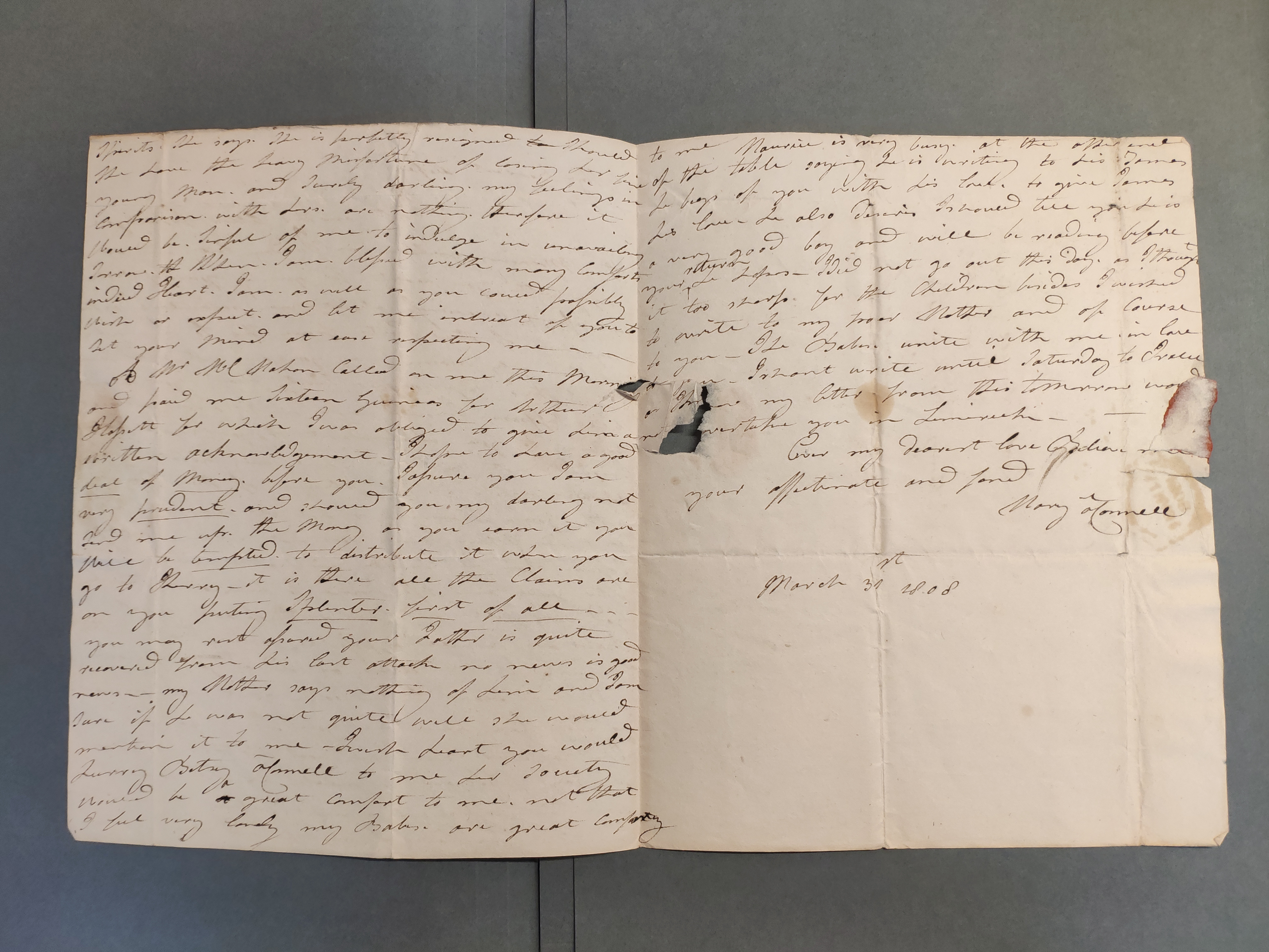 Mary O'Connell to her husband Daniel, 31 Mar 1808.