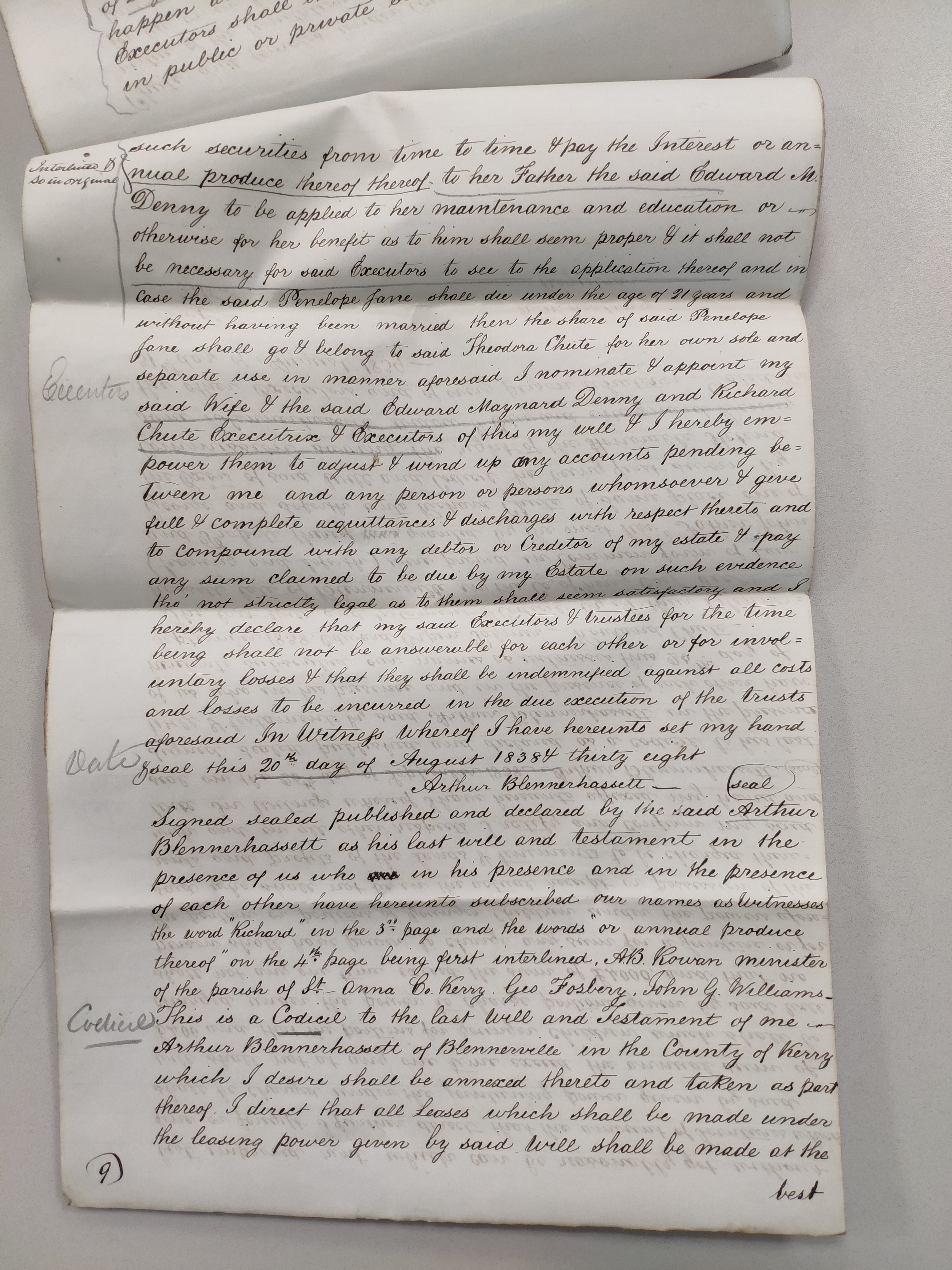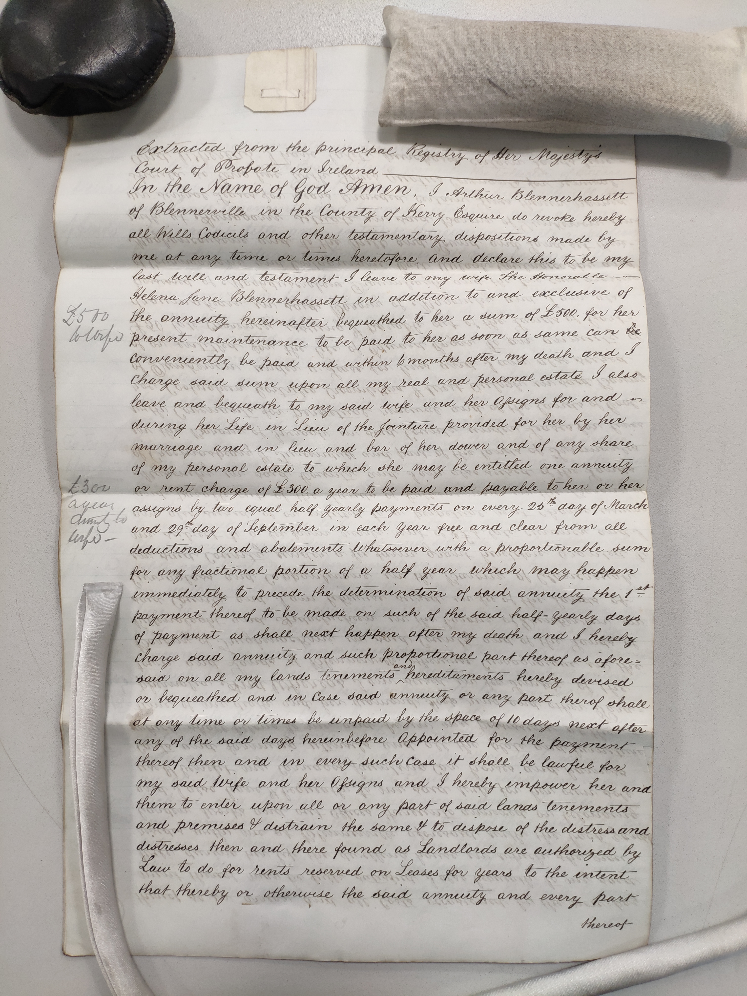 was witnessed by Arthur Blennerhassett of Dublin, attorney.