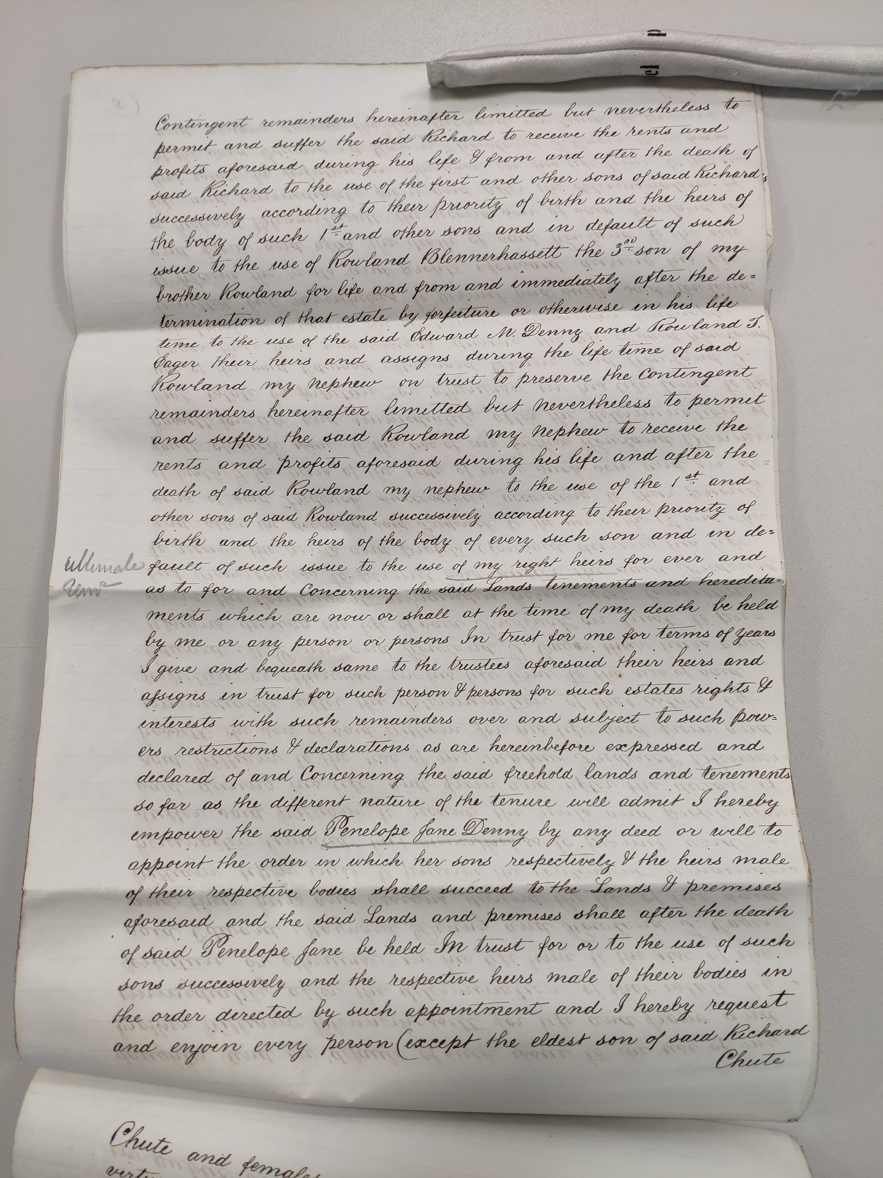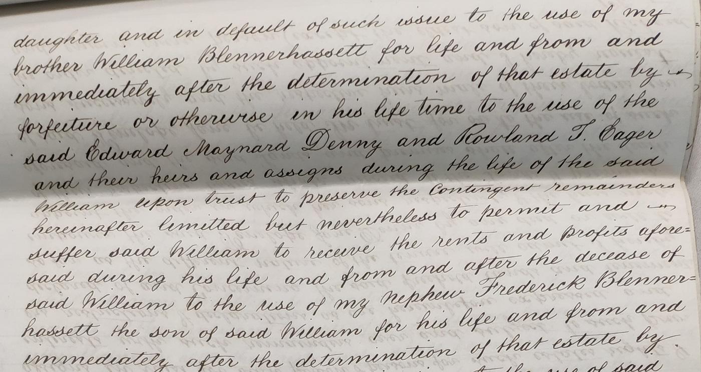 lists a large number of family members in line of succession to his property if lines ahead of them fail.