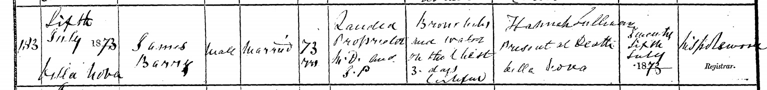 James' will is dated the day he died, 6 July 1873.