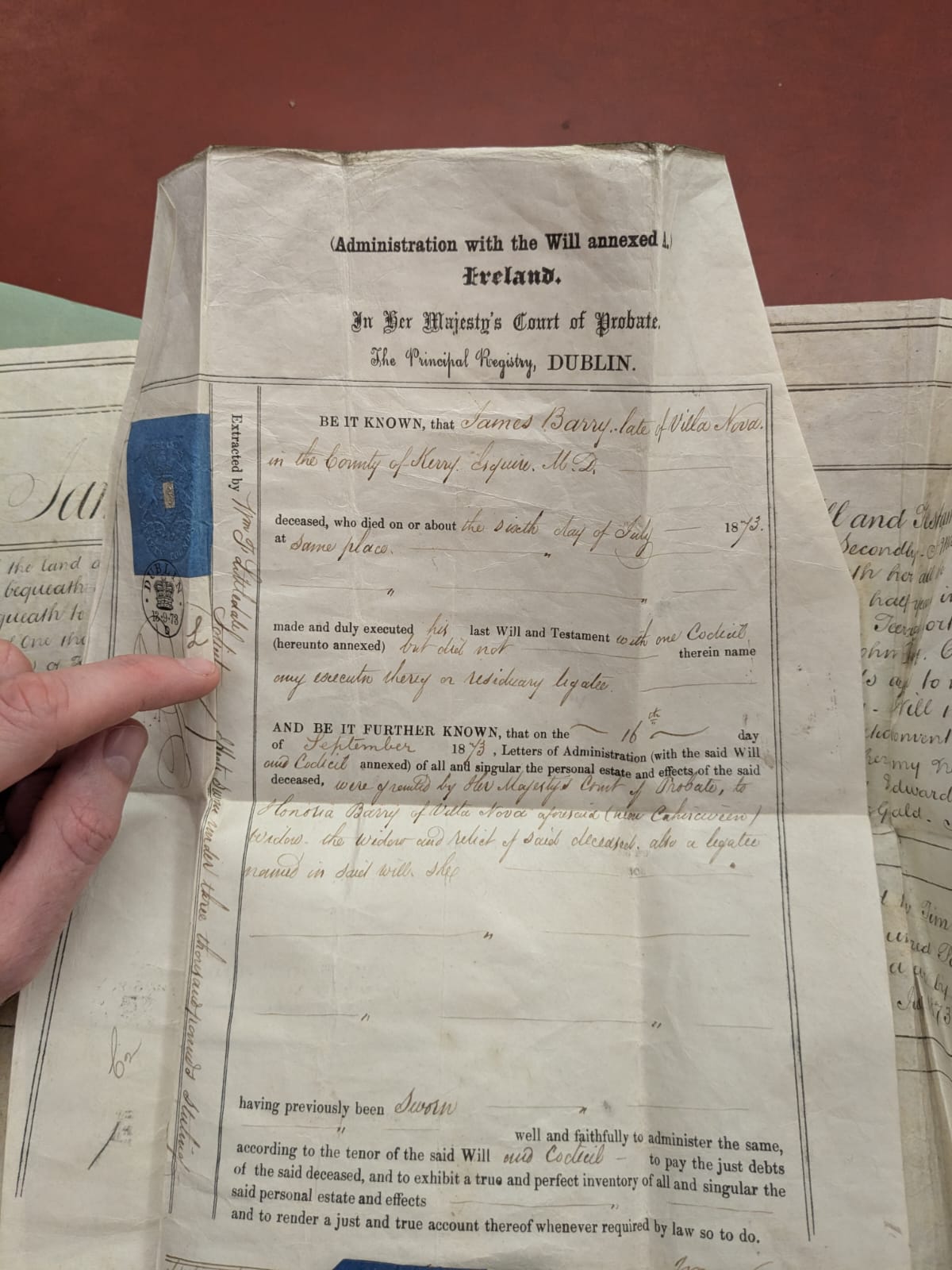 Admin of will dated 16 Sept 1873.