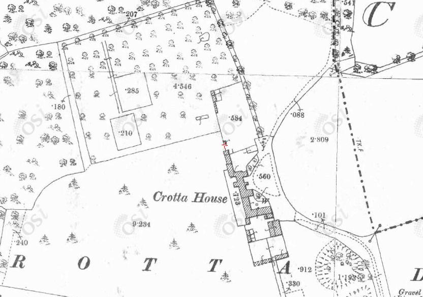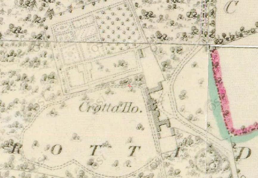 Crotto House stood where these trees are, to the RHS of the surviving building.