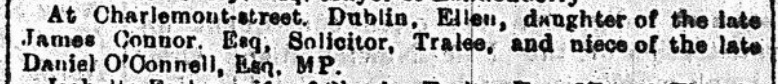 She died unmarried at 70 Charlemont St, Dublin, 22 Dec 1859, age 66 yrs.