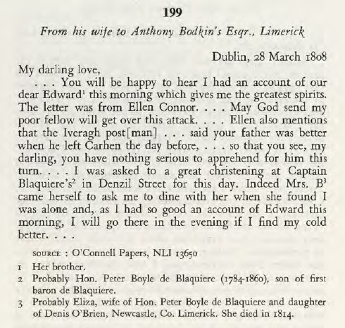 Ellen Connor mentioned in letter of 28 Mar 1808