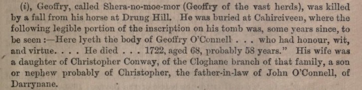 He was bur in Cahirciveen Churchyard, with an inscription on his tomb