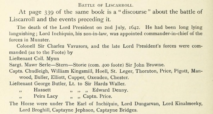 From "Rebellion 1641-2 described in a letter of Rev. Urban Vigors to Rev. Henry Jones", by Philip D. Vigors, [JCHAS] Ser. 2, Vol. 2, No. 19 (1896), pp.289-306. This is from p.306.