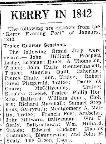 on a Grand Jury sworn at Tralee. He is of Tralee.