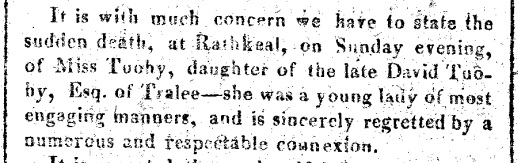 Miss Tuohy's death in 1806 was covered in newspapers.