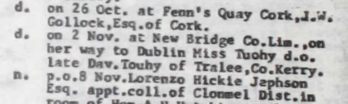 Abstract of notice in Limerick Chronicle, shortly after 2 Nov 1806.