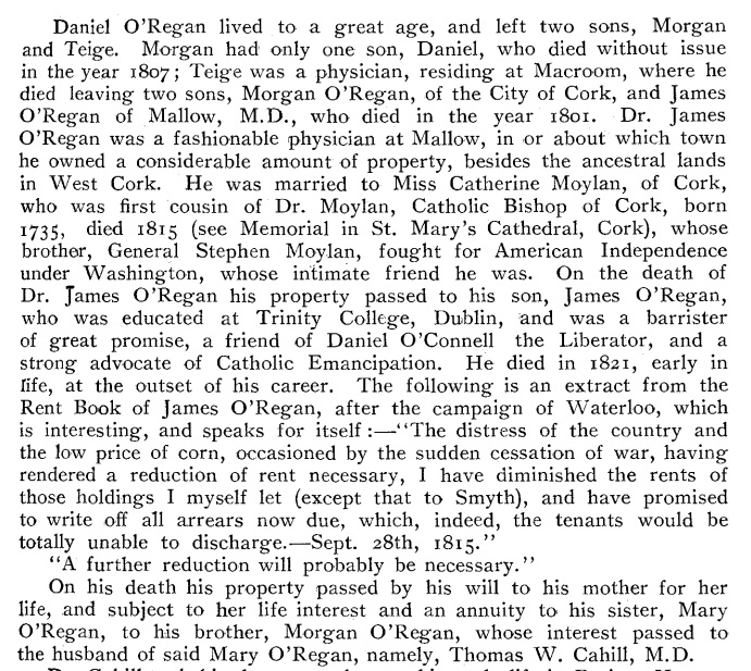 From "Sir Teague O'Regan of Ballynacloghy, Co. Cork",