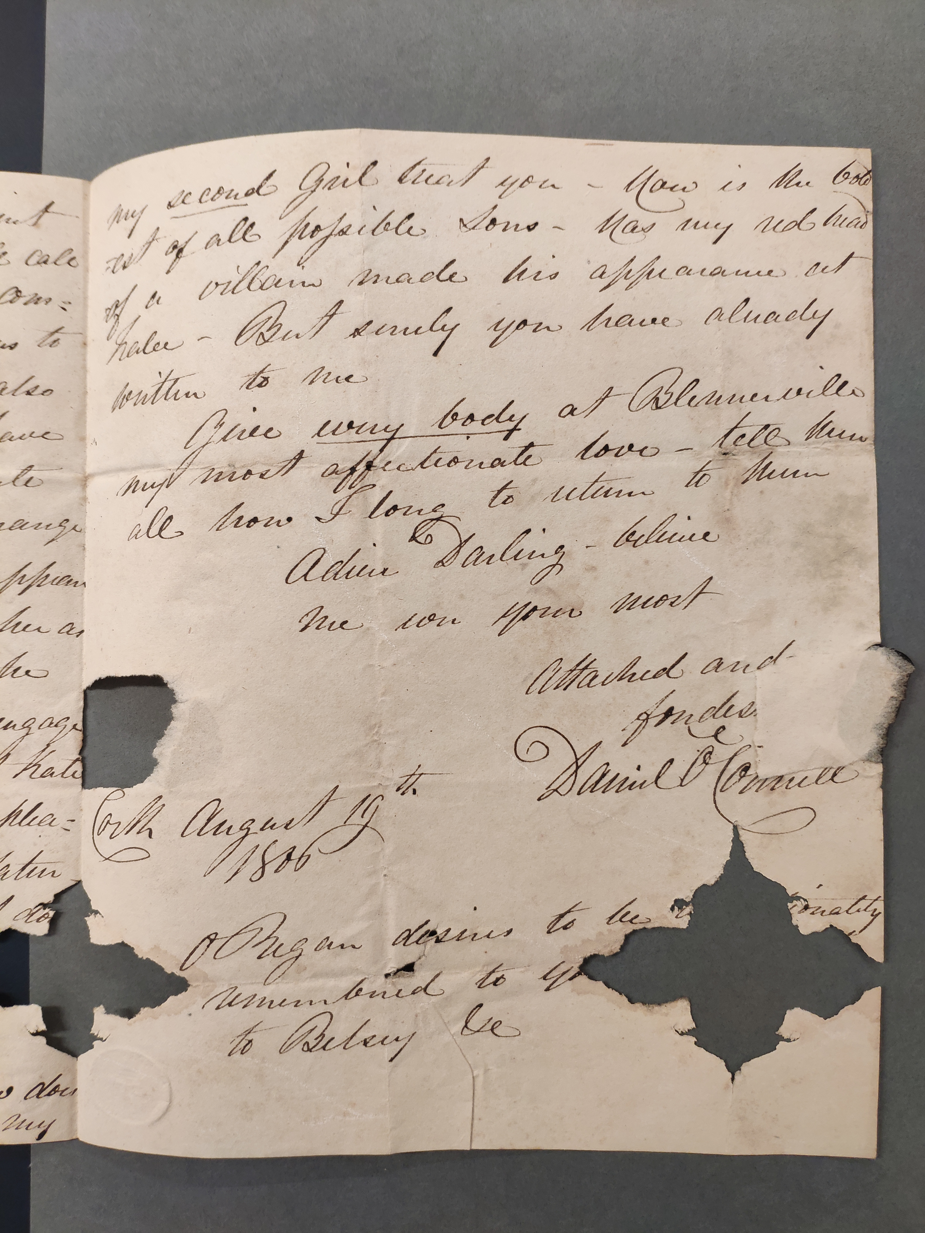 Daniel O'Connell to his wife Mary, 19 Aug 1806.
