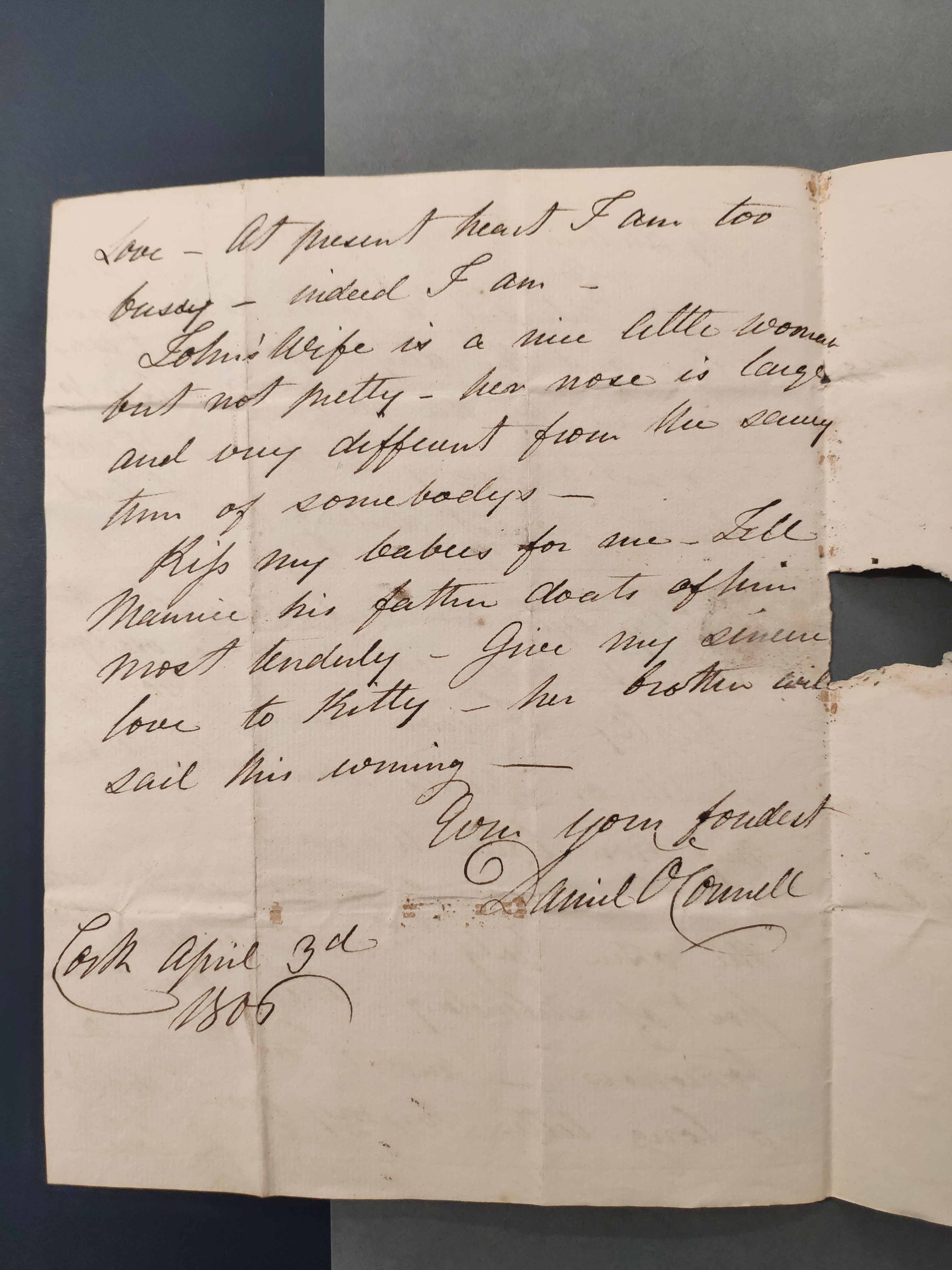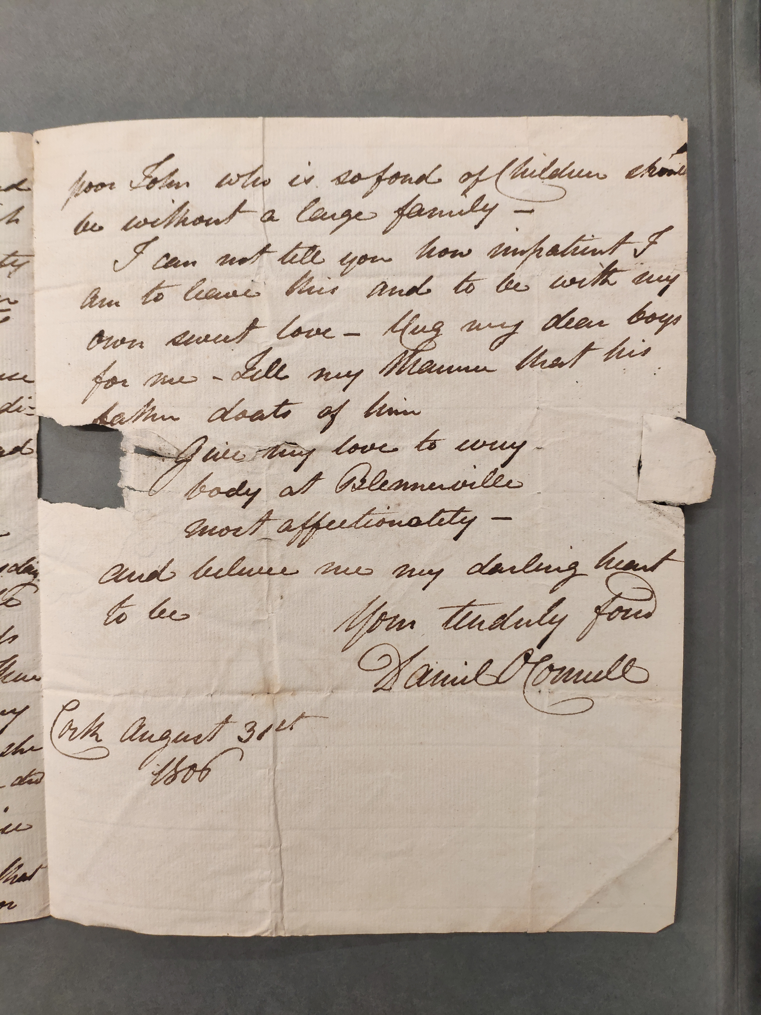 Daniel O'Connell to his wife Mary, 3 Aug 1806.