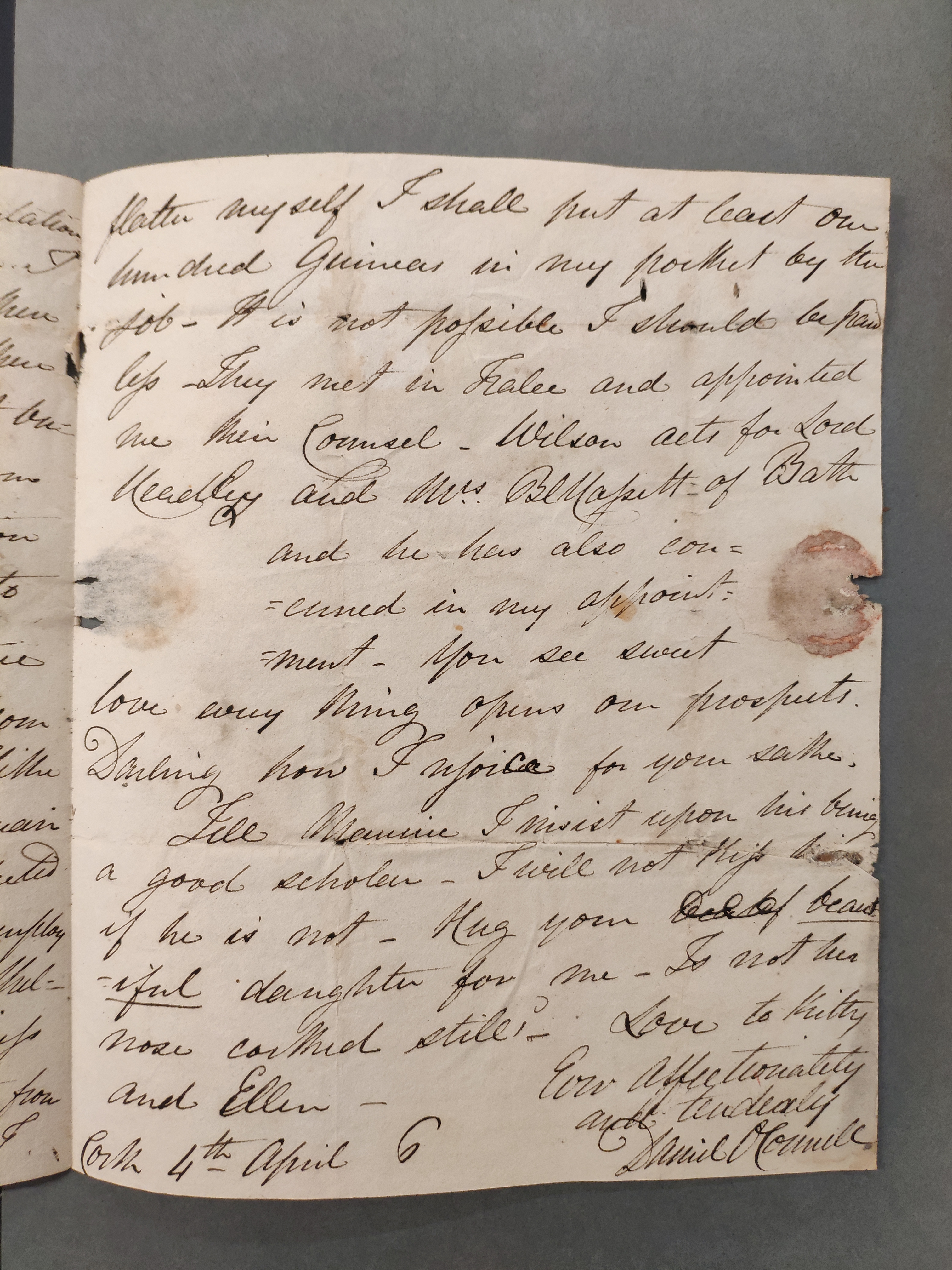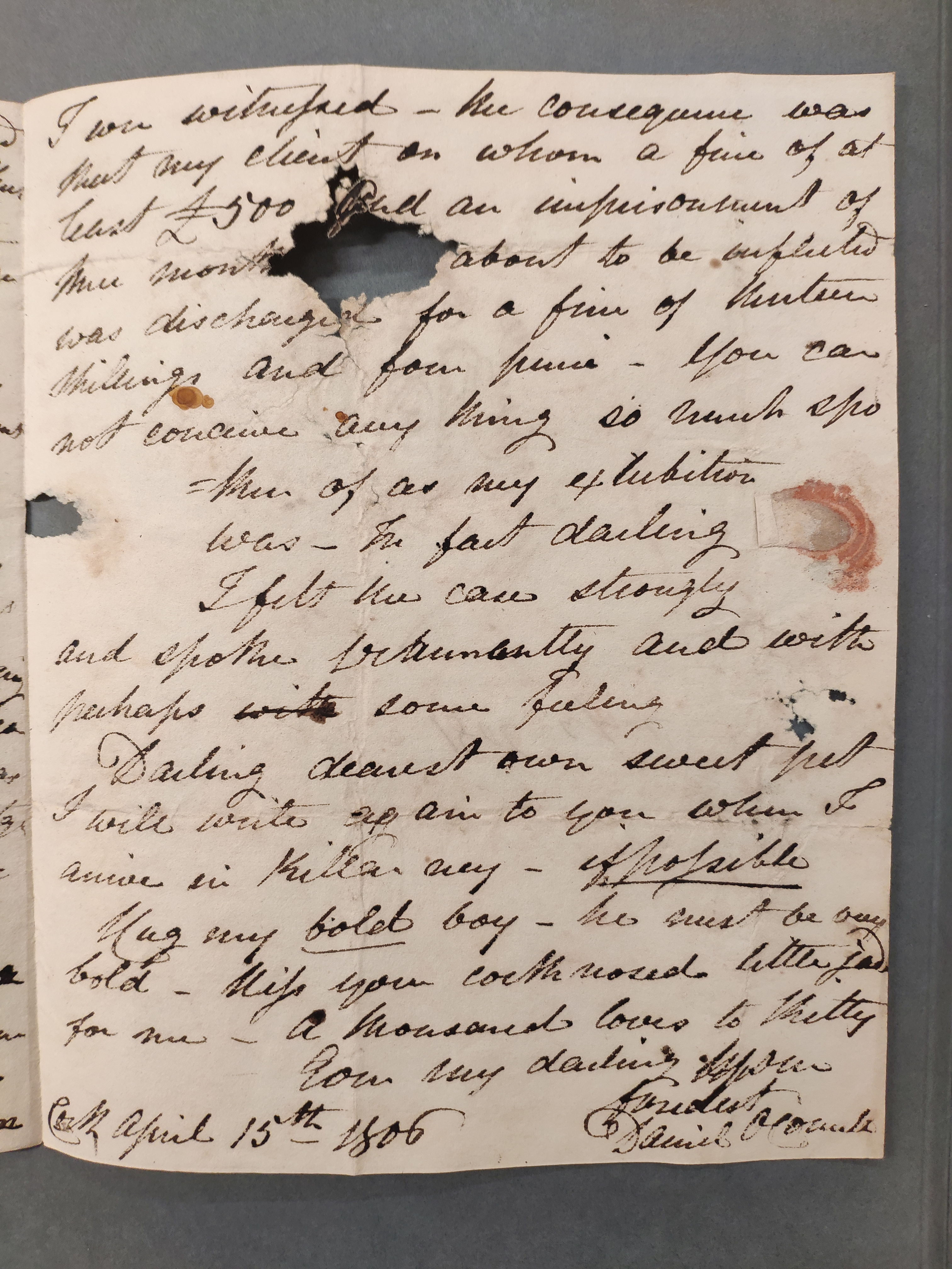 Daniel O'Connell to his wife Mary, 3 Apr 1806.