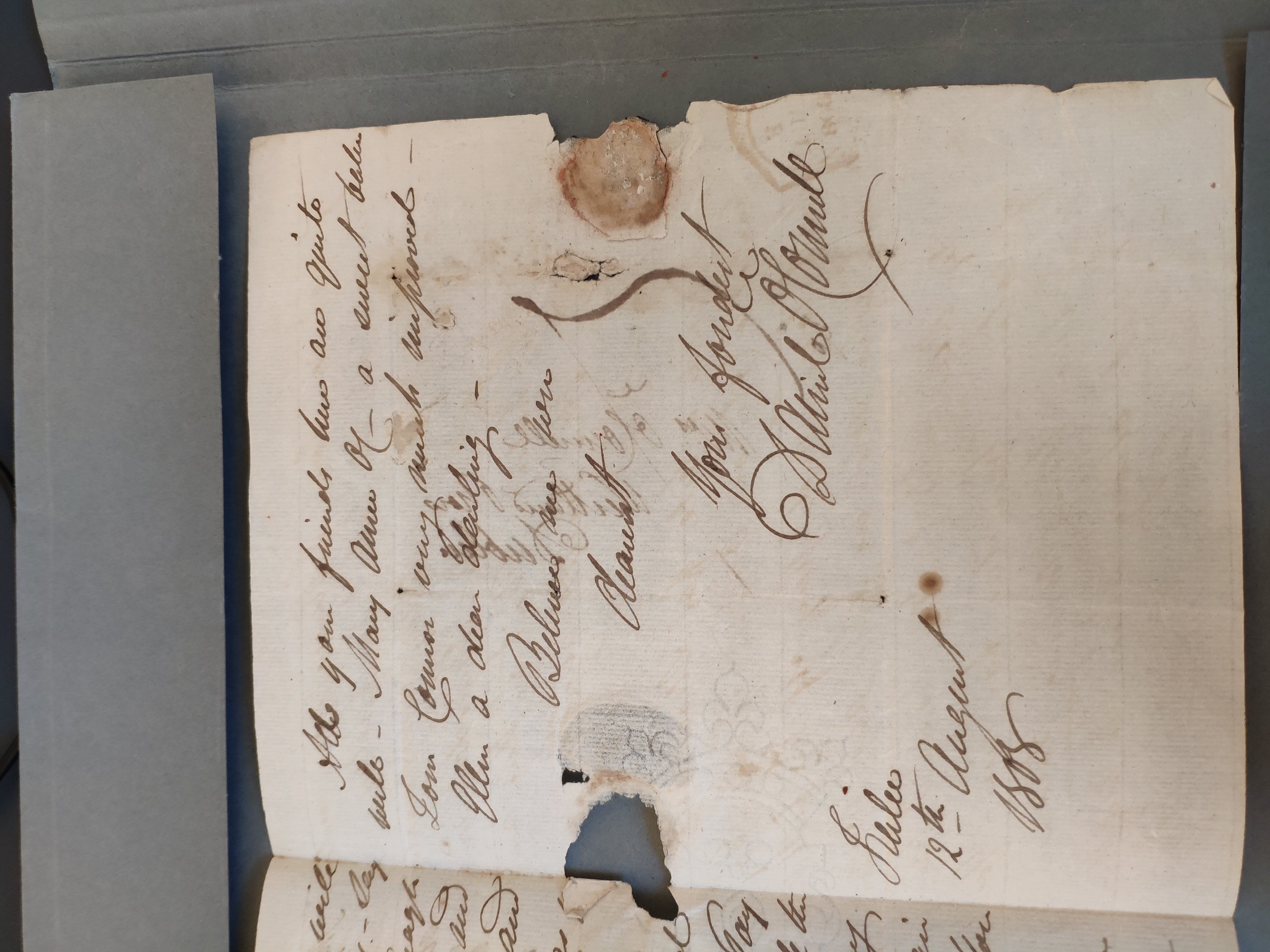 Daniel O'Connell to his wife Mary, 12 Aug 1808.