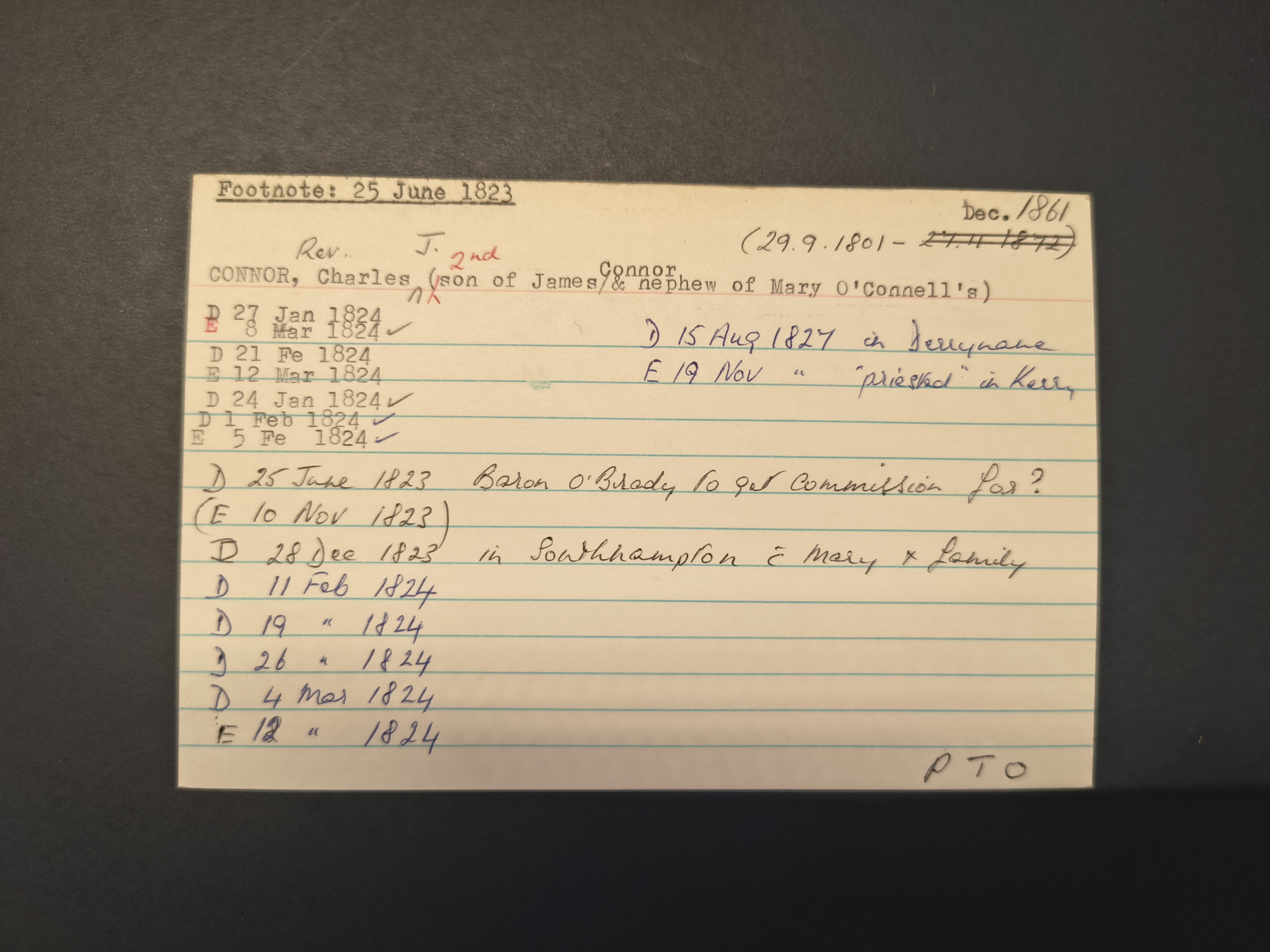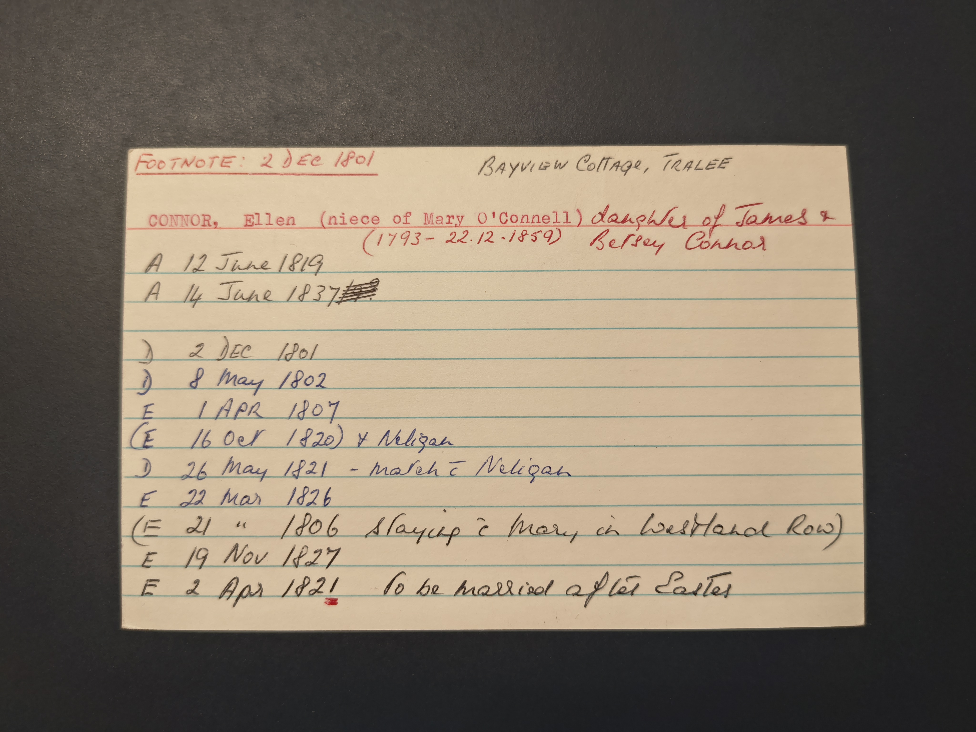 says the O'Connor family home as at 1837 (formerly the home of James O'Connor) was on Castle St, Tralee,