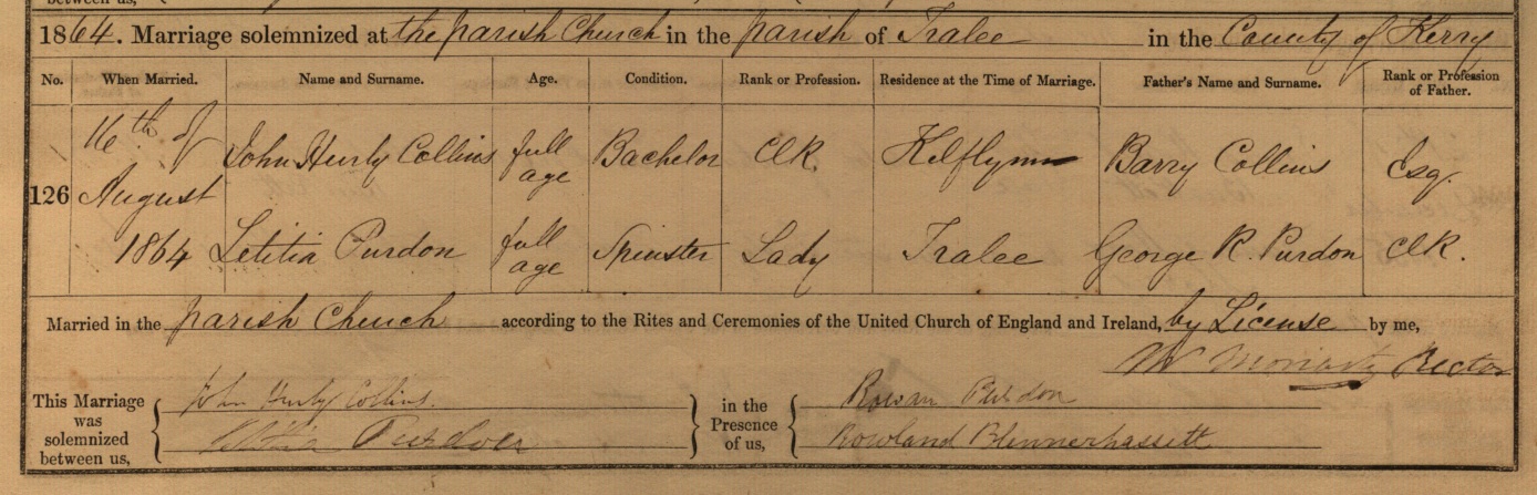 He mar 1836 to Mary Blennerhassett [born 16 Nov 1811].
