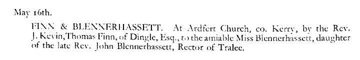 Rev. John Blennerhassett was Rector at Ventry in the 1758 to 1765 period, before his marriage.