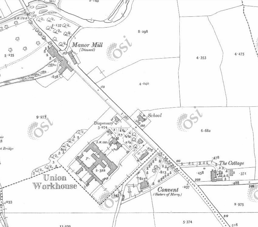 Manor Mill (part of) and Lamberts' House, on Convent Road, Clogheen.
