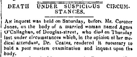 - Coroner's inquest into Agnes' death, Dec 1847.
