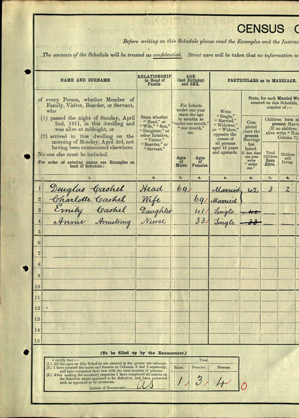 Douglas and Charlotte had issue (1911 census shows this is complete list of children):