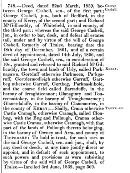 About Cashell property in Co.Kerry held on a lease from Gun.