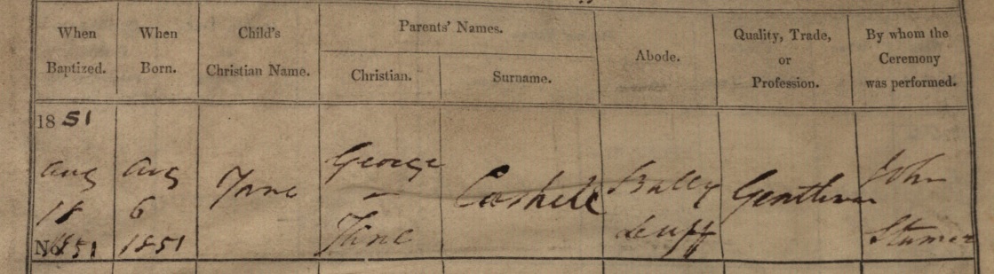 and the child is baptised at Killehenney CoI church