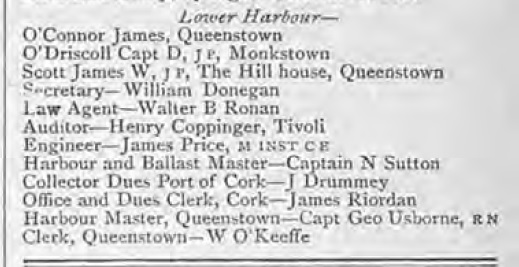 as Office and Dues Clerk, Lower Harbour, Cork,