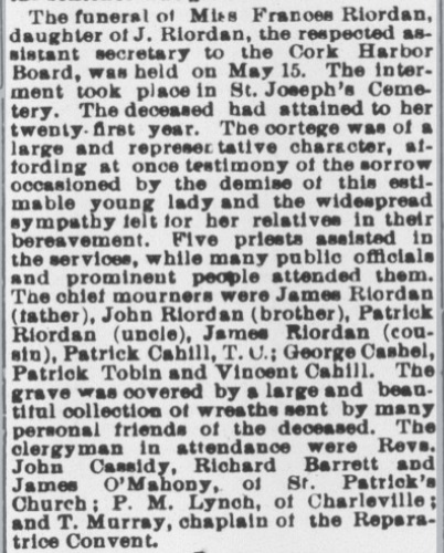 At mar 1868 he is "accountant", living Lower Glanmire Rd, Cork.