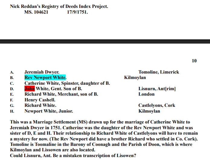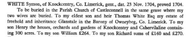 - History of the Family of White of Limerick, Knockcentry, Cappaghwhite, Lisowen, Kilmoylan, etc.,