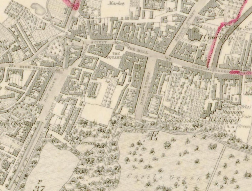Some good houses on the Mall, a broad street by Sir Barry Denny's frightful old Castle.