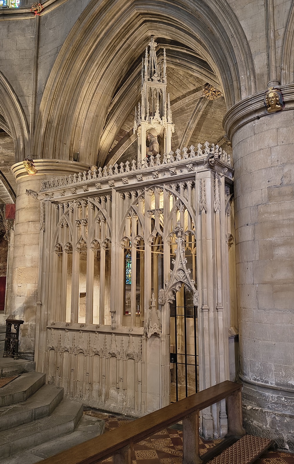 The chantry of Lord Edward Despenser, Tewkesbury Abbey (left of the pillar).