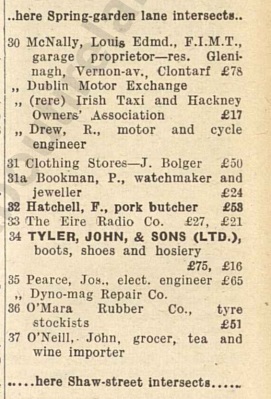 Listed at 36 Pearse St in [Thoms] from 1929 on.