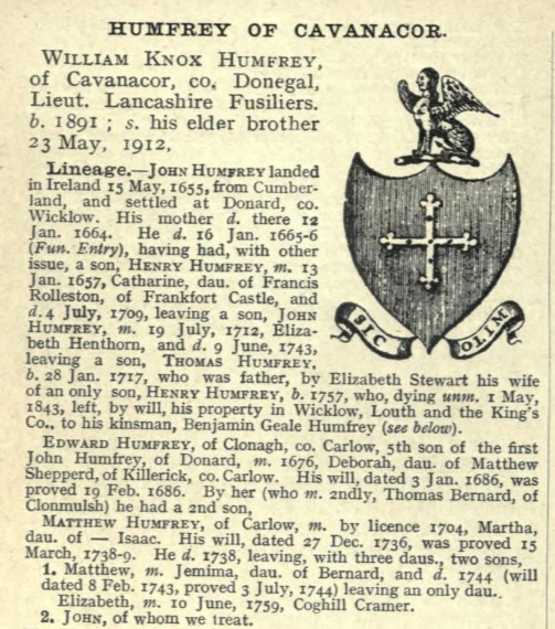 starts with William Humphrys of Ballyhaise, married before 1786.