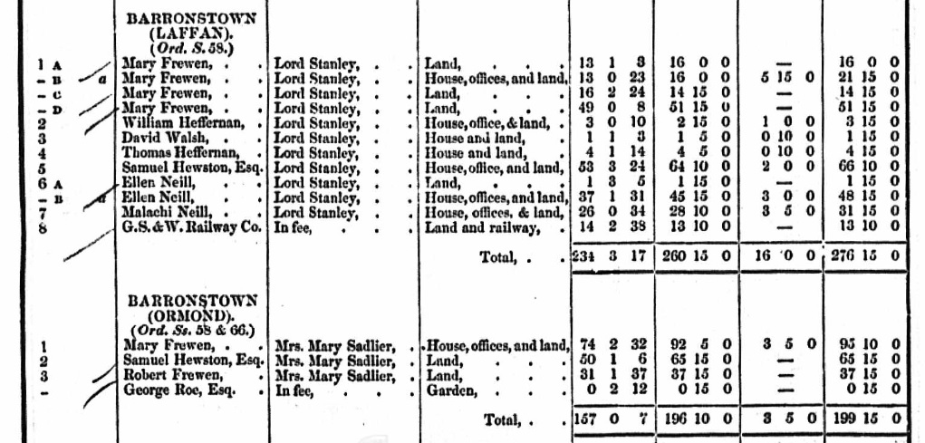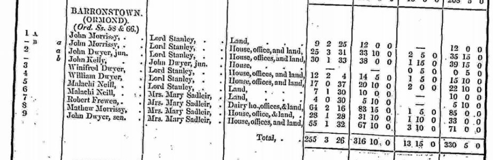 the O'Dwyer house in Barronstown (Ormond), Shronell par, was called "Barronstown House".