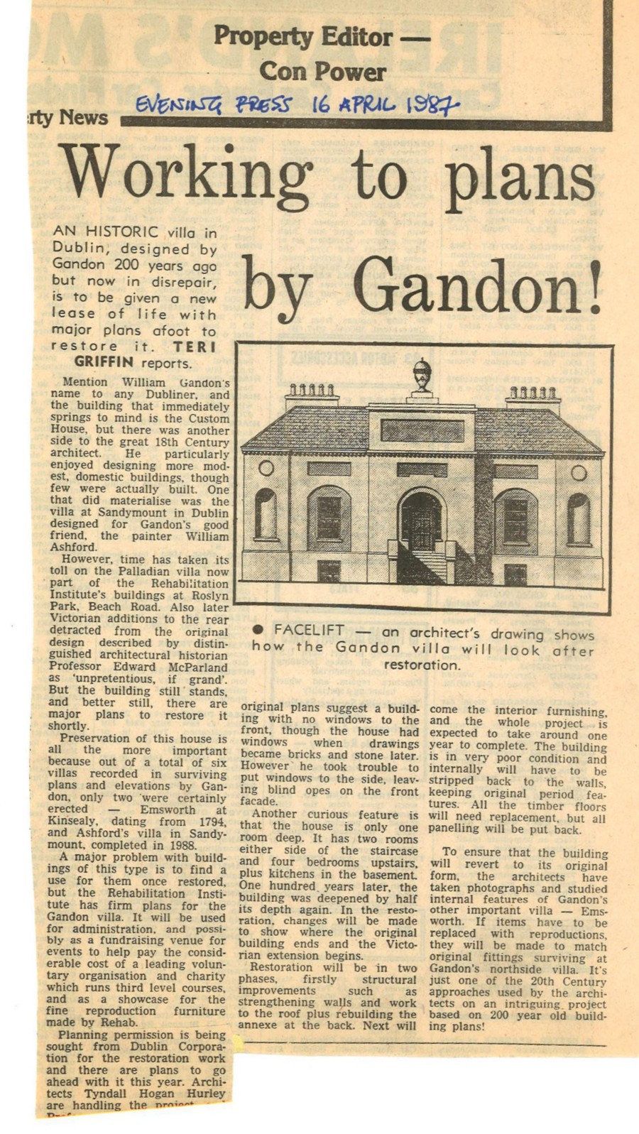 [Gandon and Mulvany, 1846] Says the Gandon house is Sandymount Park. See extract part 1 and part 2.