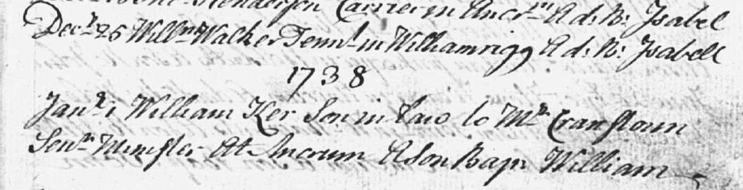 William Kerr and "Hellener Cranstown", 30 Sept 1735,