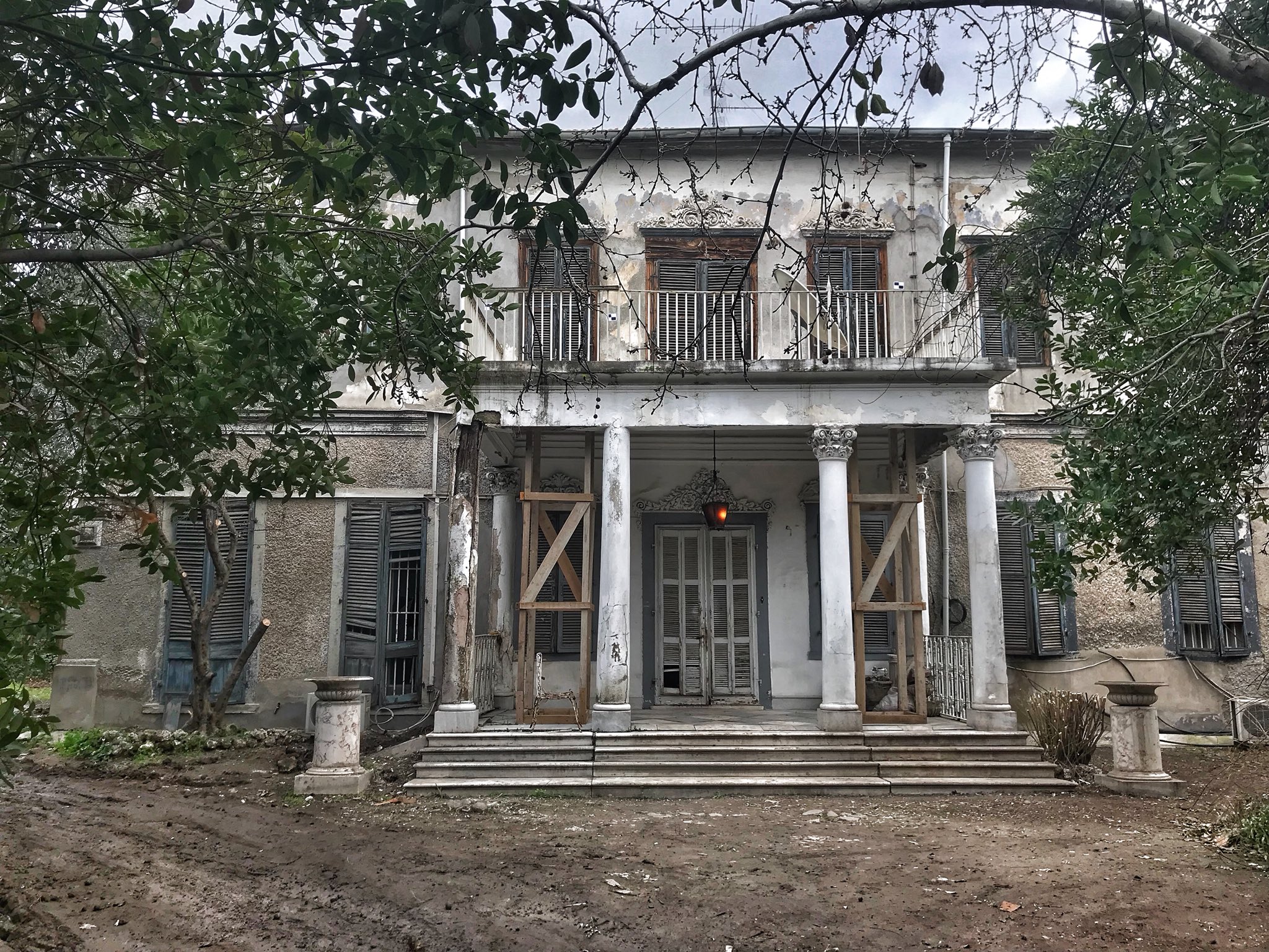 This is during the time (2014) when the house and outbuilding were in a ruined state.