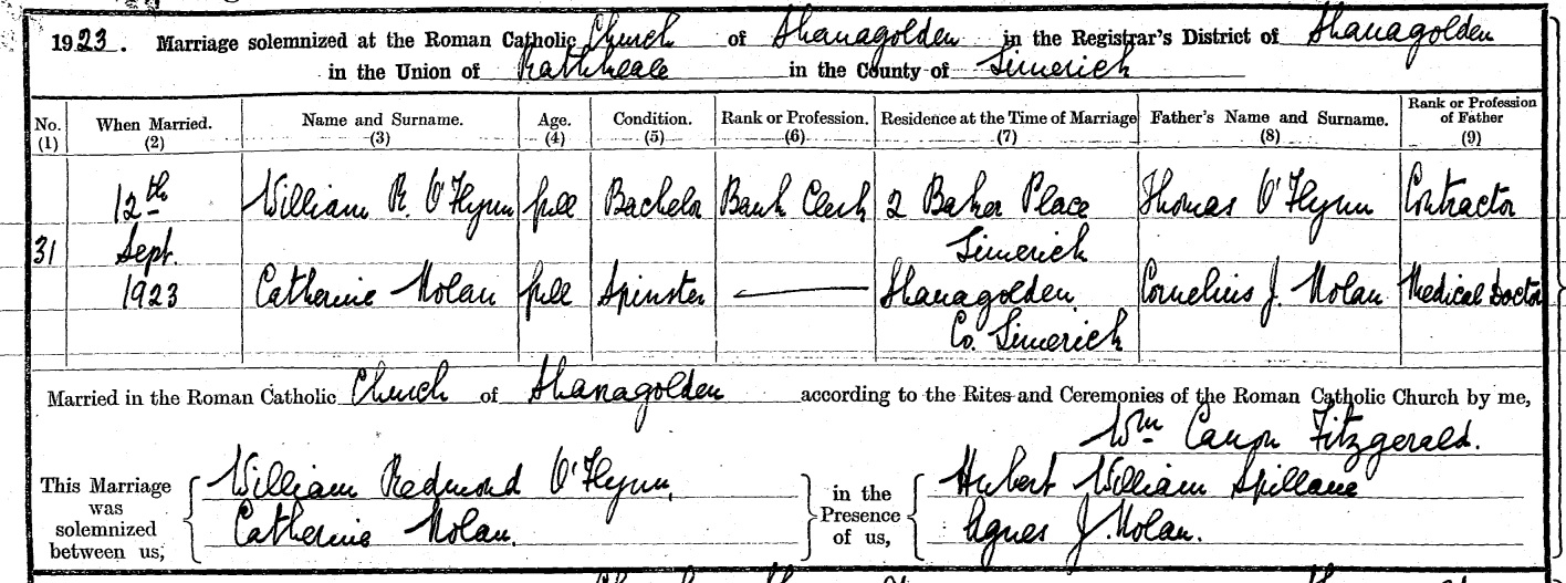 She mar 12 Sept 1923 to Bill O'Flynn and had issue.