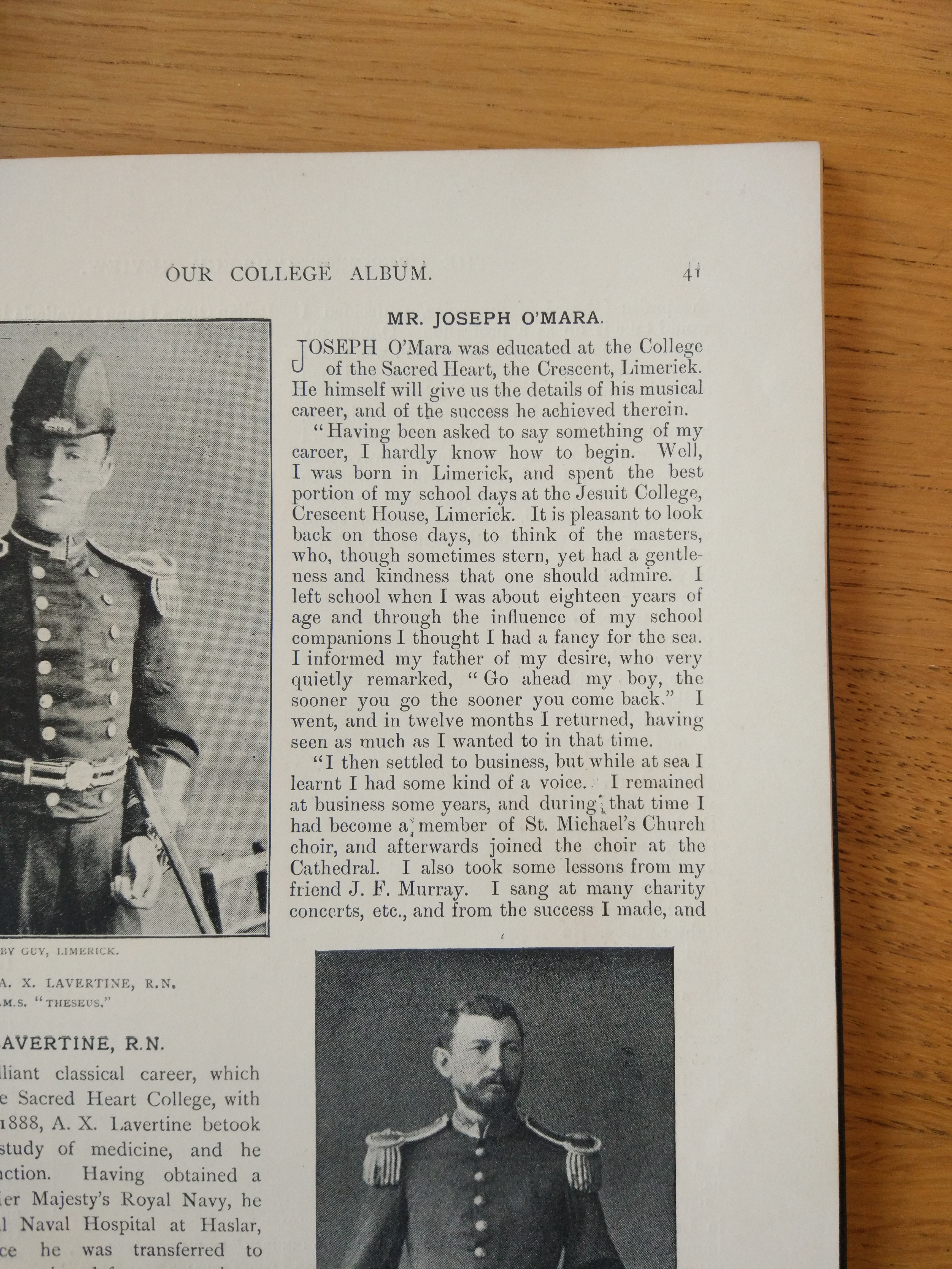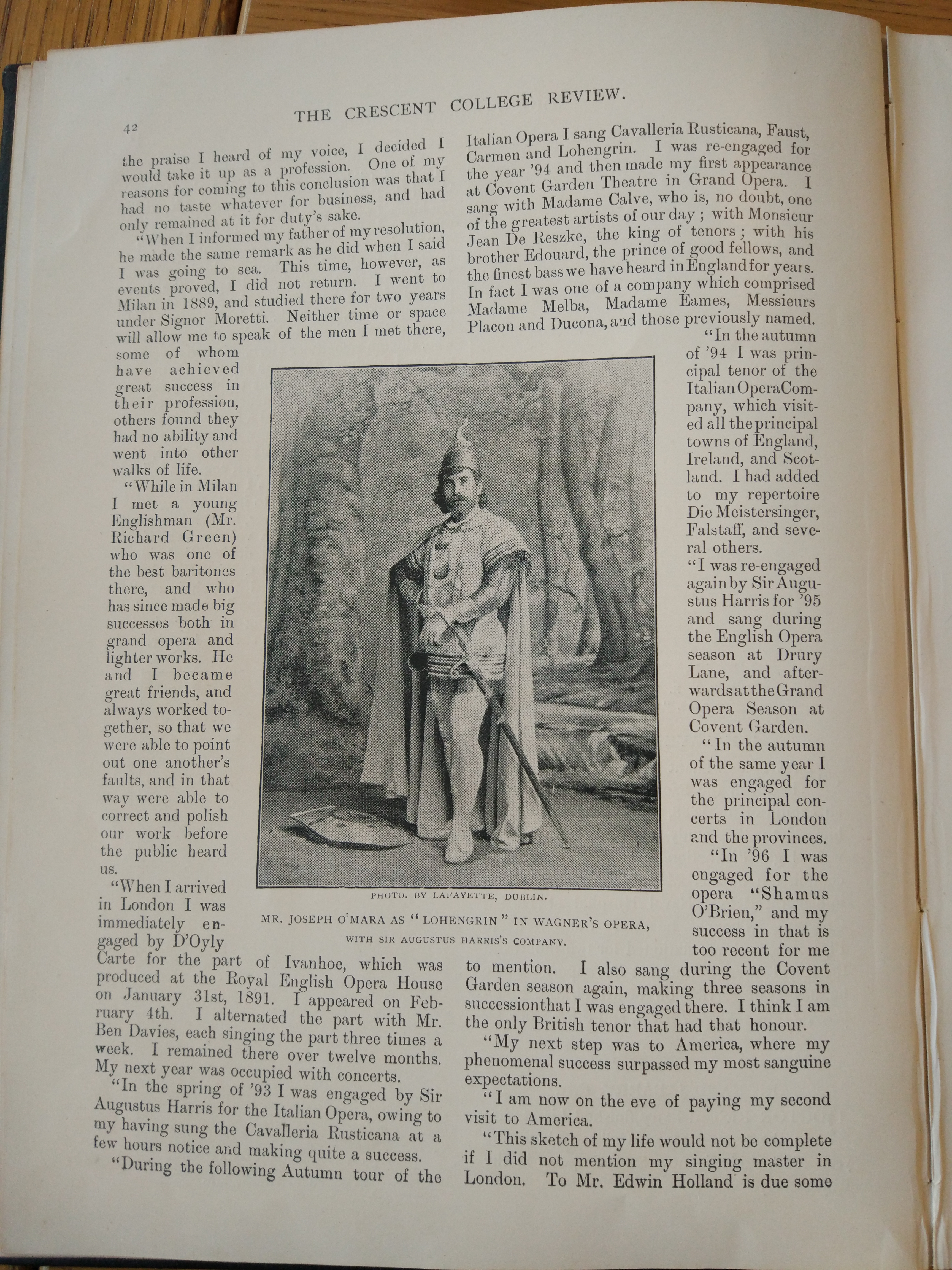 Article on Crescent Alumni describes him as "the leading Irish tenor before the arrival of John McCormack".