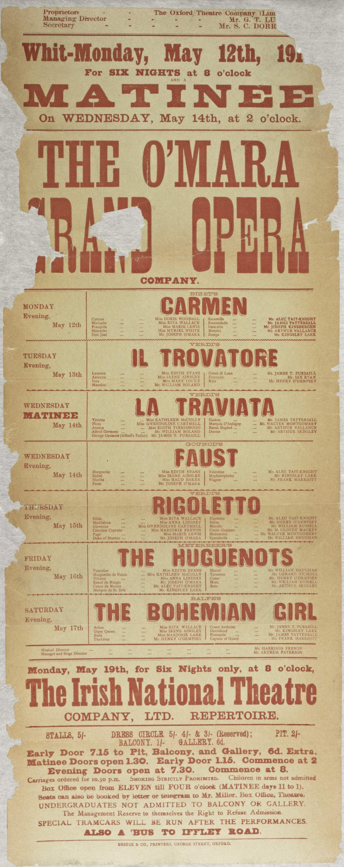 See poster advertising The O'Mara Grand Opera in May 1913. From here. Original from NLI.
