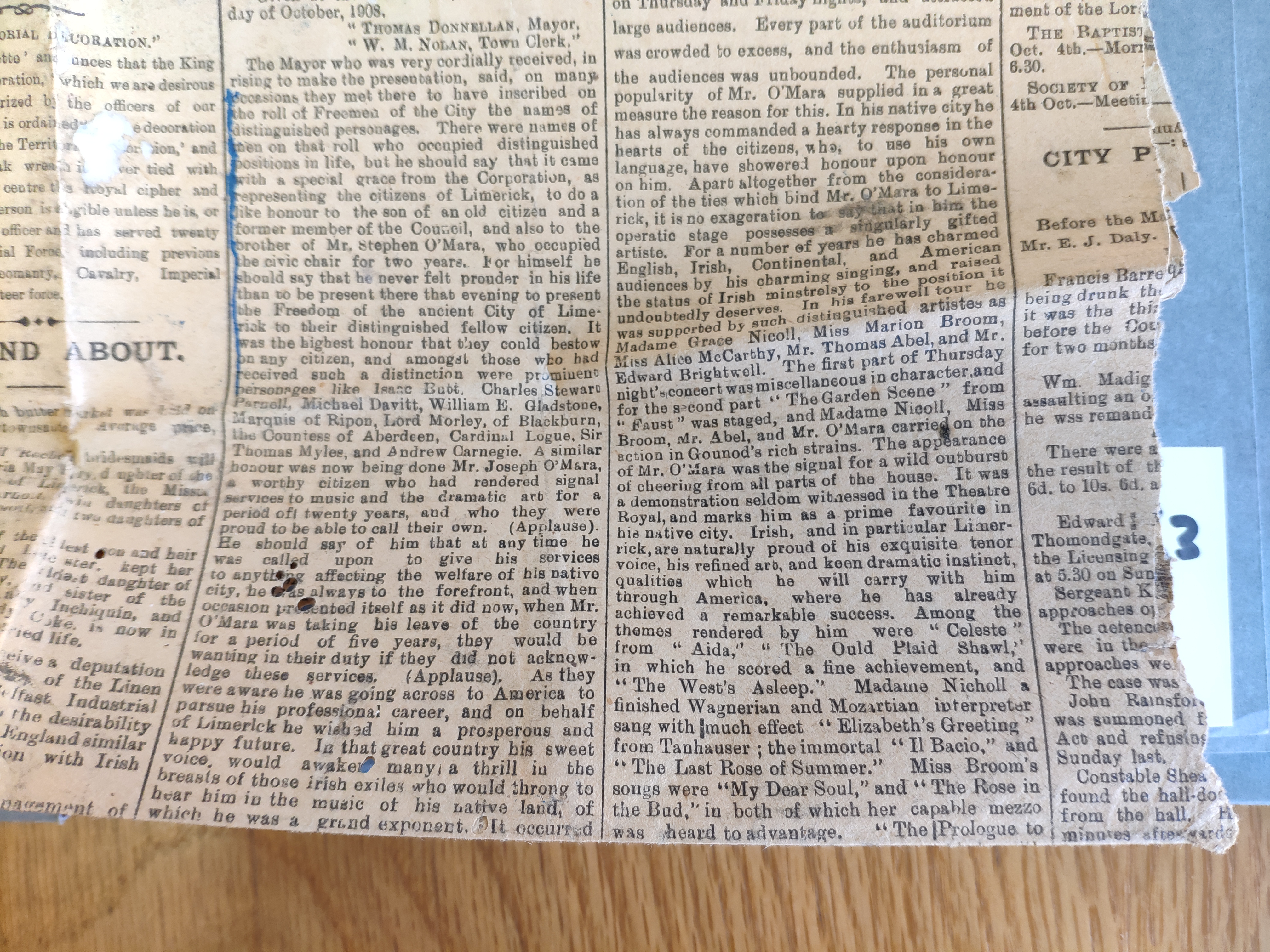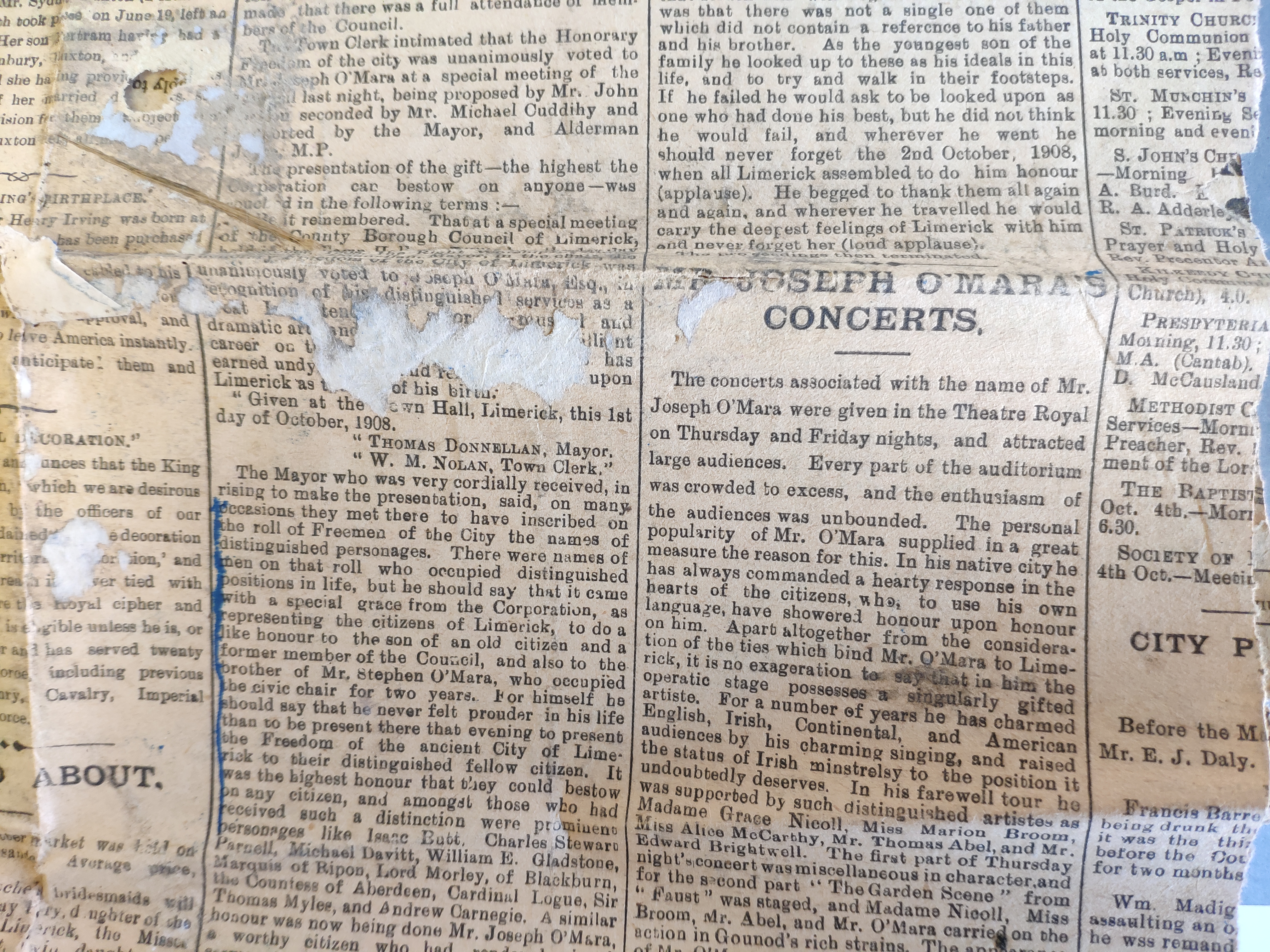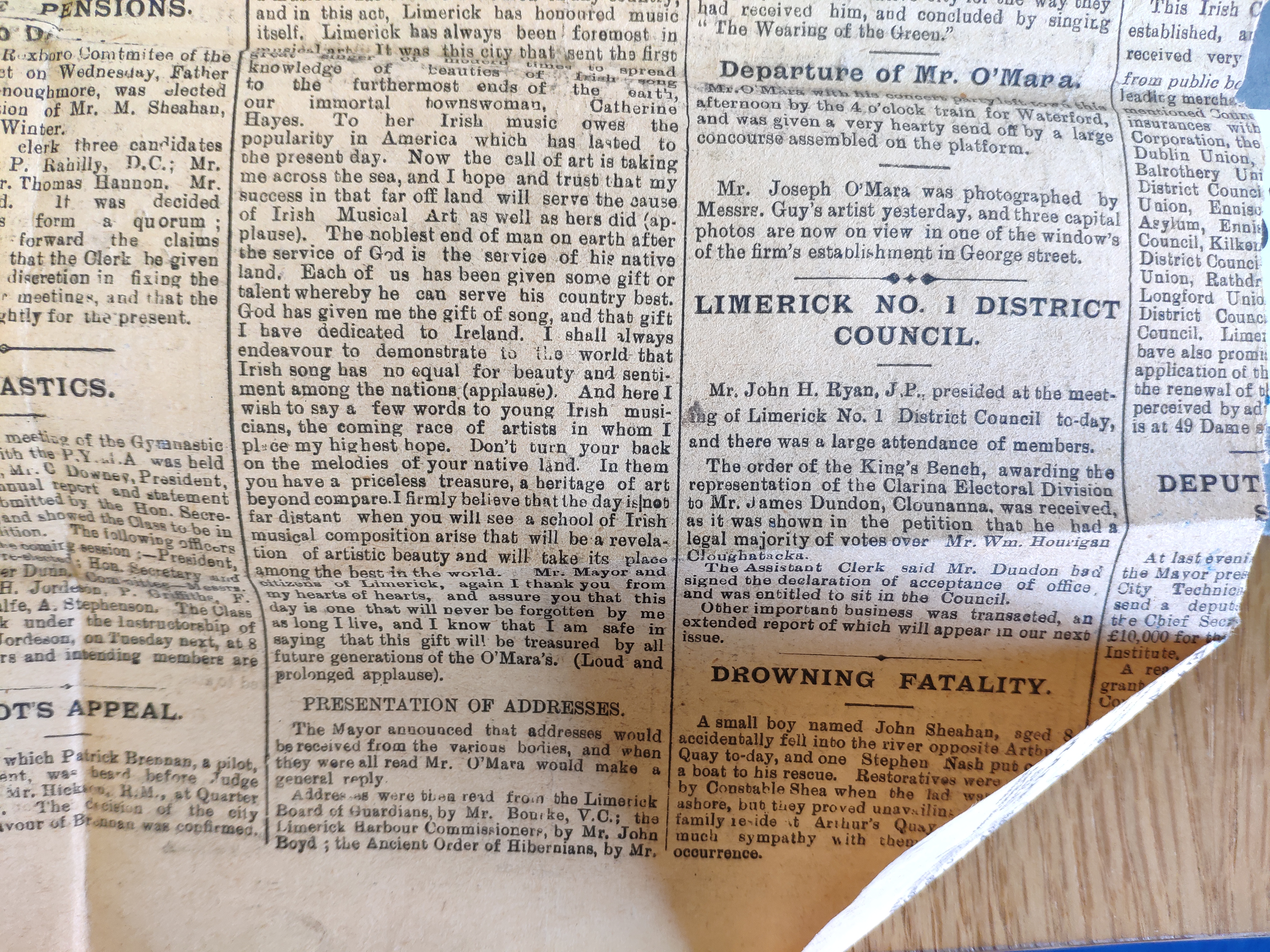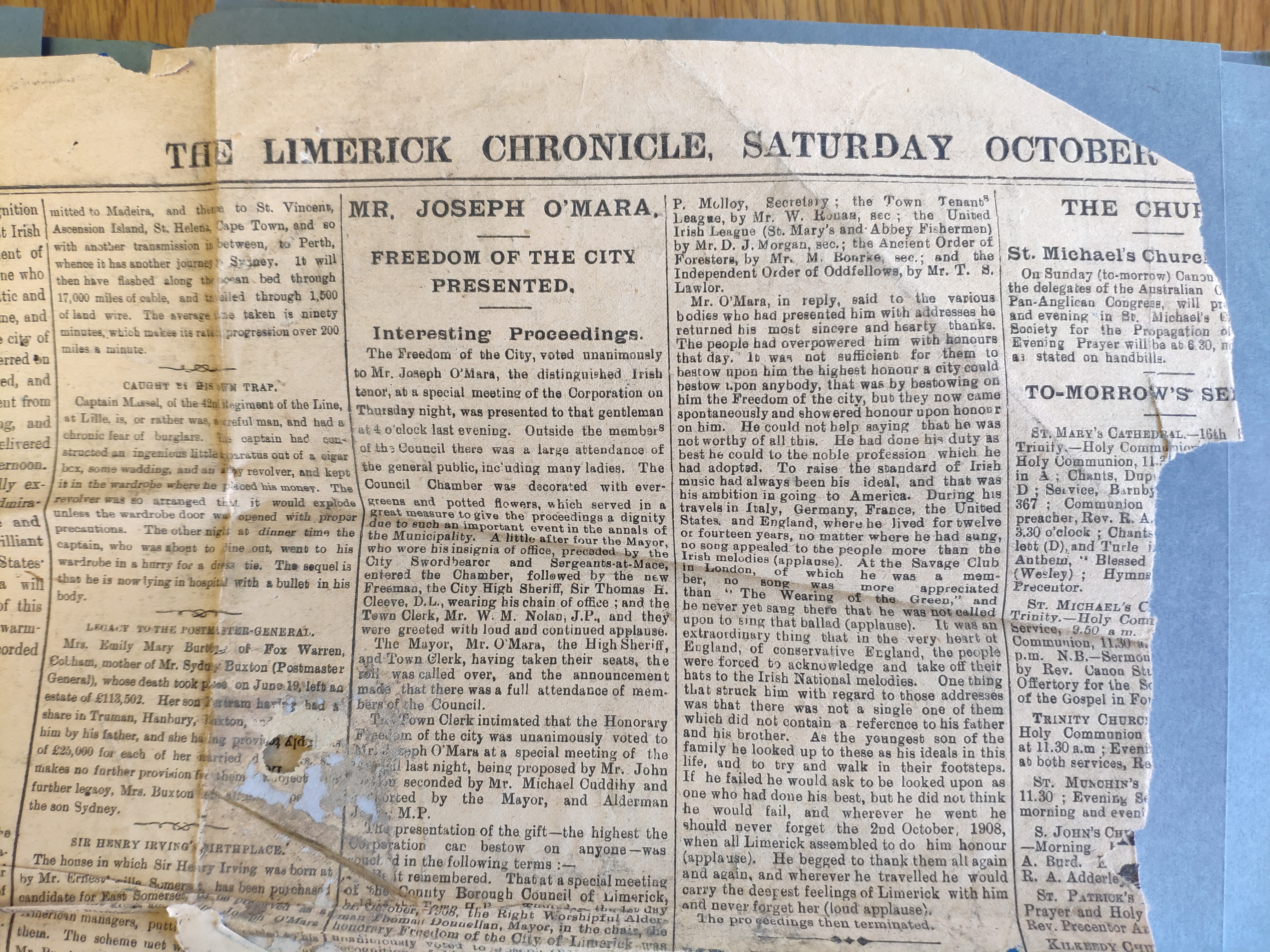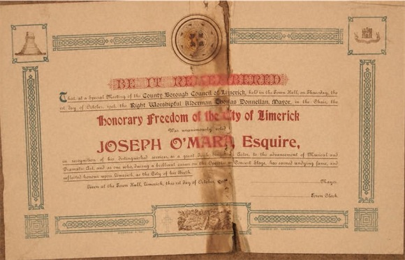 Joseph was granted Freedom of Limerick on 1 Oct 1908. See certificate from Limerick Museum.