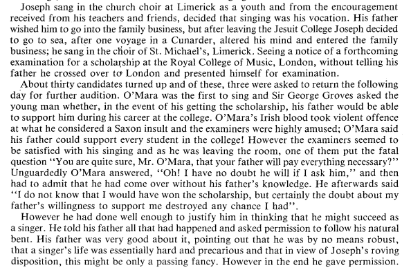 [Potterton, 1970] outlines the story of how Joseph first considered a singing career, and how he got his father to agree.