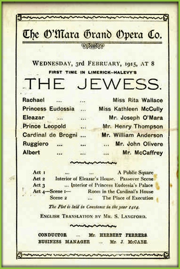 See poster for him singing in "The Jewess", Theatre Royal, Limerick, 3 Feb 1915. Posted here.