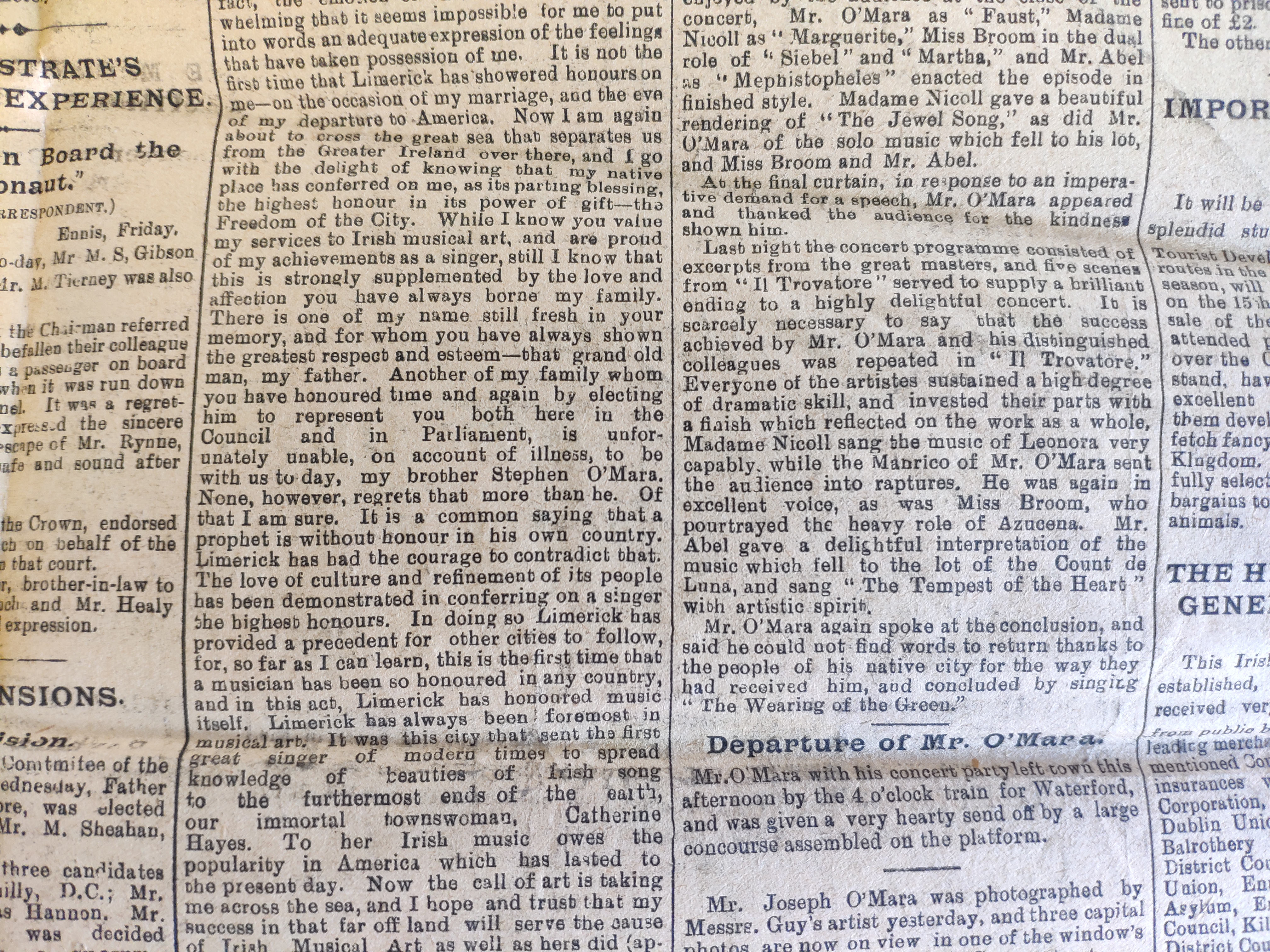 "There is an Irish Caruso at the Broadway and his name is Joseph O'Mara."