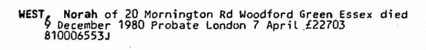 She died London, 9 Dec 1980, age 83 yrs.