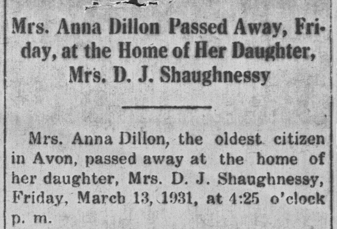 Funeral Mon 16 Mar, bur St.Augustine cemetery, Illinois.