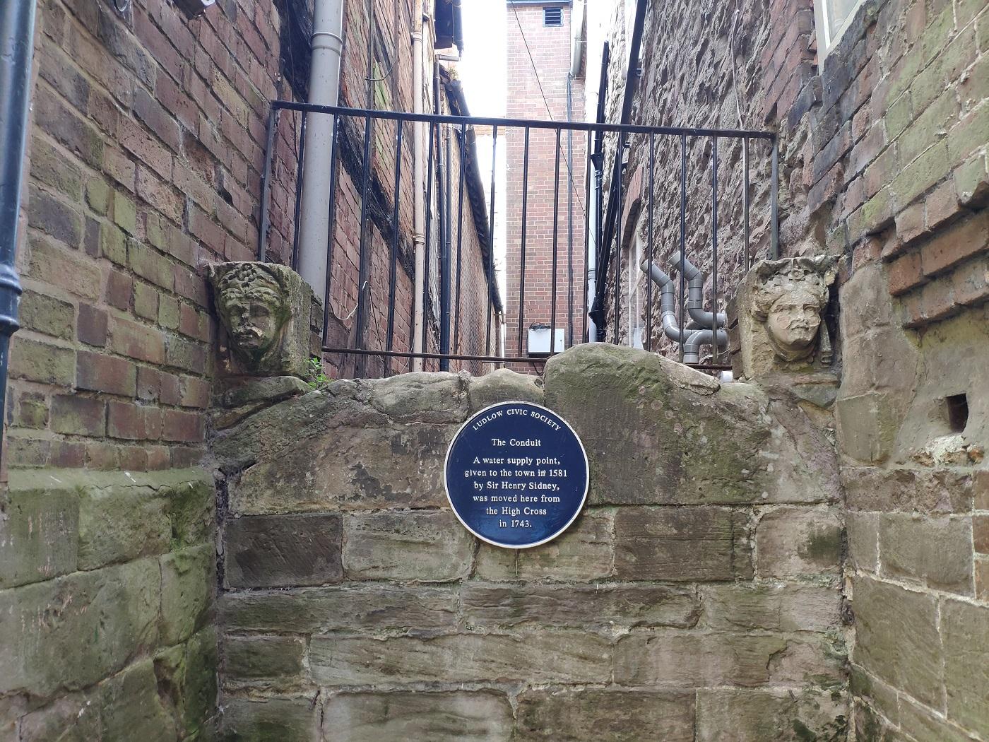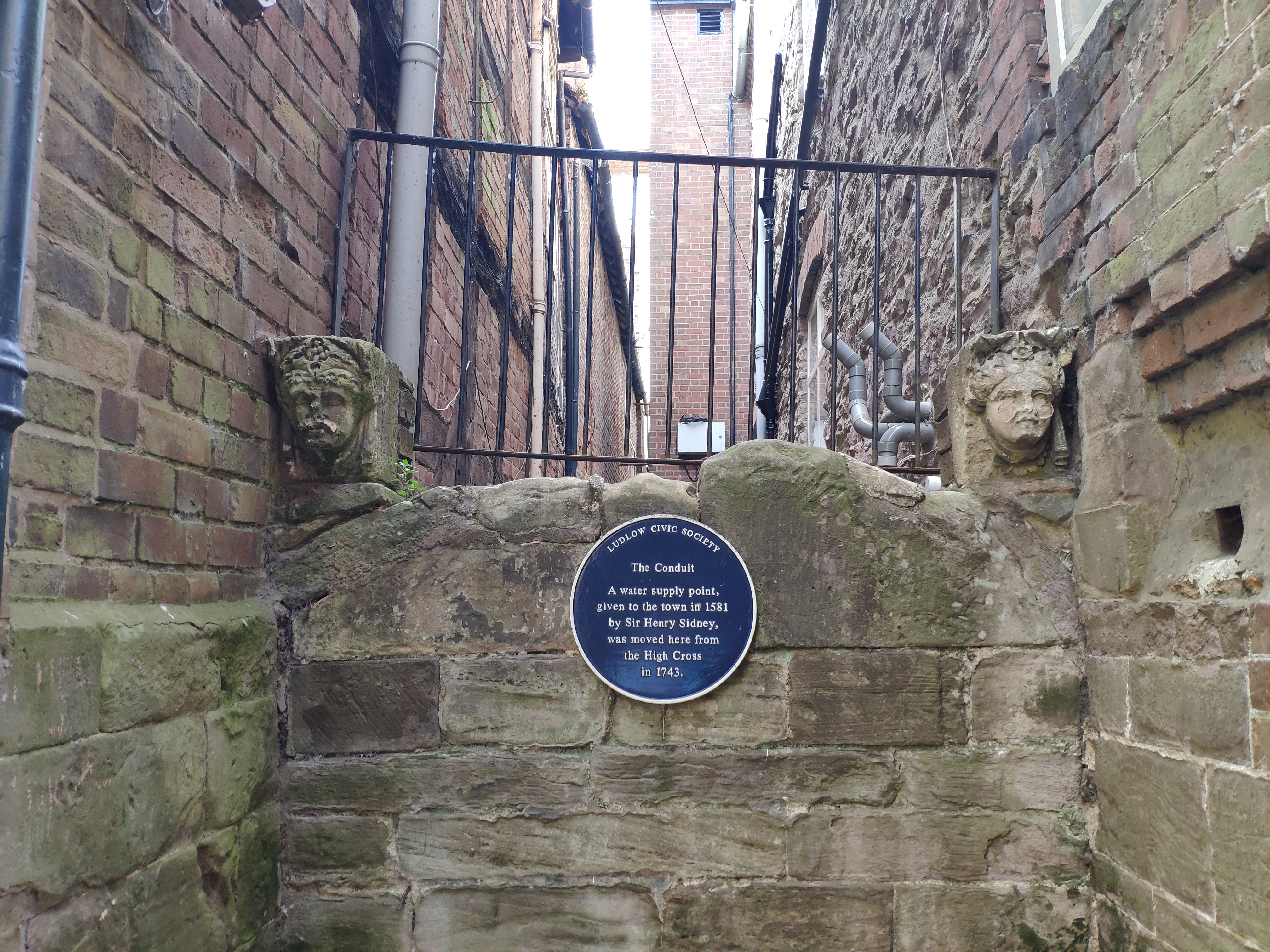 Plaque on the water supply point set up in Ludlow by Sir Henry Sidney in 1581.